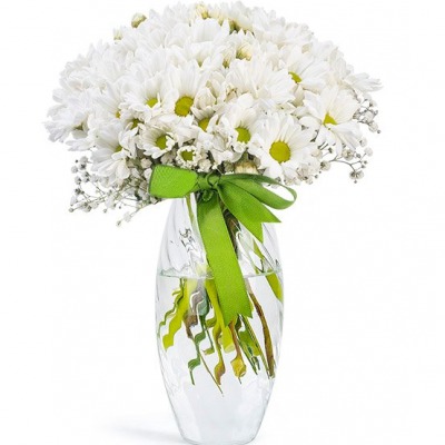 Dekoratif cam vazo içerisinde beyaz papatyalar ile hazırlanmış aranjmanı kim istemez? Sevdiklerinize güzel bir sürpriz Ozgurcicek.net ile yapabilirsiniz.